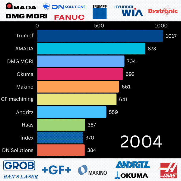 近日,备受注目的全球机床行业权势巨子榜单——TOP 25 Machine Tool Producers正式发布。来自中国的三家企业富家激光、邦德激光和友嘉国际均正在榜单之上。 山崎马扎克公司(Yamazaki Mazak Corporation)是一家成立于1919年的日本出名机床制制商,总部位于日本爱知县丹羽郡大口町竹田1—131。次要出产多种高端机床设备,包罗夹杂式复合加工核心、复合加工核心、5轴加工核心、CNC车削核心、CNC系统、立式加工核心、卧式加工核心、激光加工机、FMS(柔性制制系统)、CAD/CAM系统和出产支撑软件。马扎克正在全球29个国度设有11处出产和80多处手艺和办事核心,全球雇员跨越8000人。山崎马扎克以其立异和高质量的产物,努力于为客户供给智能化工场转型的处理方案,为全球制制业的成长做出了主要贡献。 友嘉国际数控机床无限公司(简称“友嘉国际”)于1993年成立,涵盖近二十个行业出名品牌,正在欧美和亚洲地域具有二十一个出产,截止2021岁尾具有财产员工逾四千名。所出产的机床办事于汽车、航天航空、船舶制制以及新能源等多个下逛范畴。 天田公司(AMADA CO。,LTD。)是一家成立于1946年的日本大型跨国公司,专业出产钣金加工机械。公司总部位于日本神奈川县伊势原市,正在全球具有约90家分支机构,产物发卖笼盖100多个国度和地域。营业涵盖钣金设备、切削研磨设备、压力机设备和细密焊接设备等四个板块。此外,天田还努力于开辟制制节制机械、法式软件以及周边从动化设备等分析提案。天田以其立异和高质量的产物,为全球制制业的成长做出了主要贡献。 同时正在细密机械加工行业,友嘉国际努力于为客户供给高精度机床和从动化系统的一坐式办事。正在加工精度的同时,最大限度地为客户提超出跨越产效率。 内容来历:e-works、hpo forecasting ag、工业4。0、DMG MORI、通快、山崎马扎克、安德里茨、富家激光、邦德激光、友嘉国际等?。 富家激光2023年停业收入140。91亿元,员工人数超16900人,营业笼盖国度或地域达135个,研发人员6538人,年收入投入研发占比12。66%。 还有一张来自Martin Engels的动图很是成心思,具有丰硕的消息量,展现了过去20年,行业领先的机床制制商(TOP10)正在发卖额(百万欧元)方面是若何演变的。 正在文首的环状统计图中,我们发觉了三家中国机床企业的身影,别离是第7位的富家激光(HANS LASER)、第17位的邦德激光(Bodor)以及第19位的友嘉国际(FFG Global)。